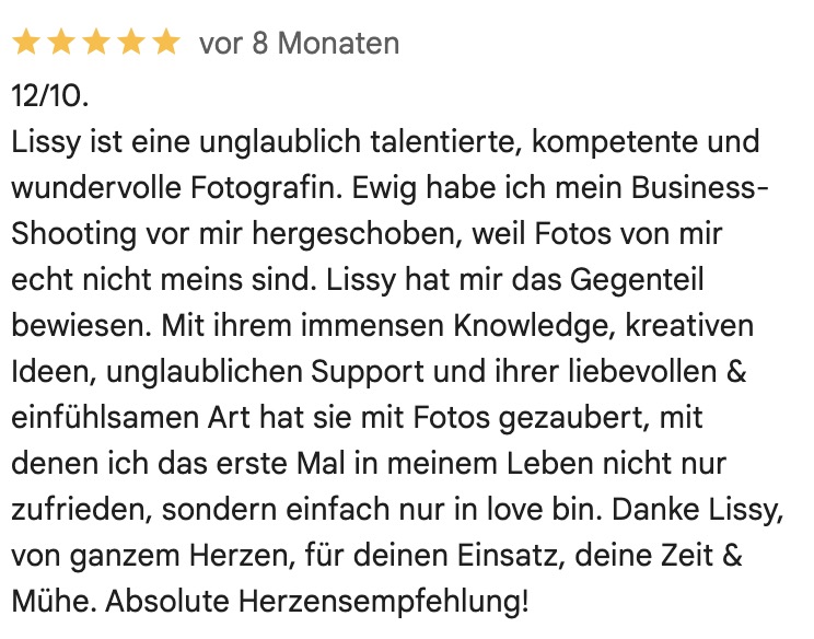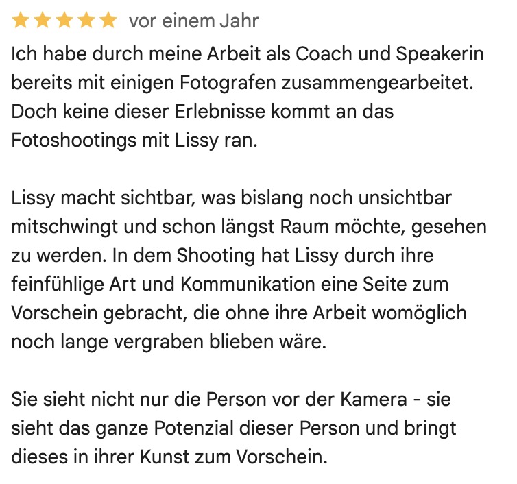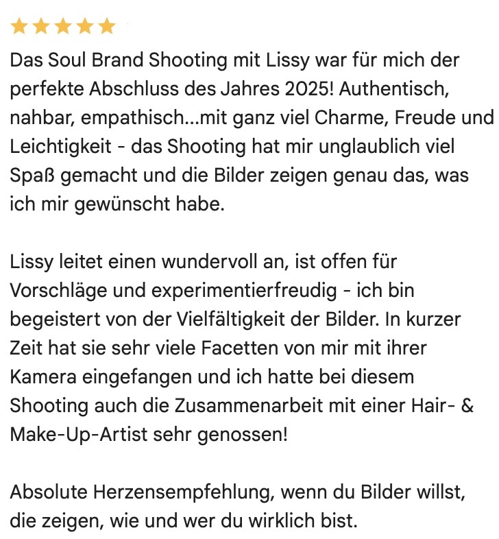 In den letzten vier Jahren durfte ich über 300 Unternehmerinnen begleiten – und jedes Mal erlebe ich, wie sie vor der Kamera nicht nur ihr Selbstbewusstsein entdecken, sondern sich selbst neu begegnen.